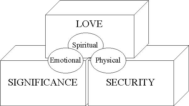 The model here shows three human needs on three different levels,